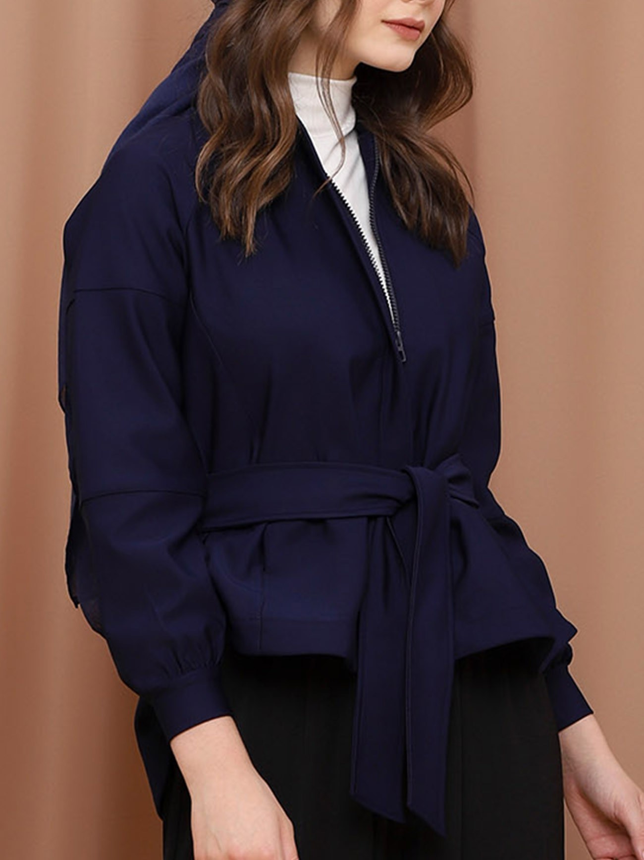 The product material is made from polyester. Washing instruction: Hand or machine wash. Use lukewarm water. Use a gentle cycle if using a washing machine. Model wears J.Rep Petite size (Small).