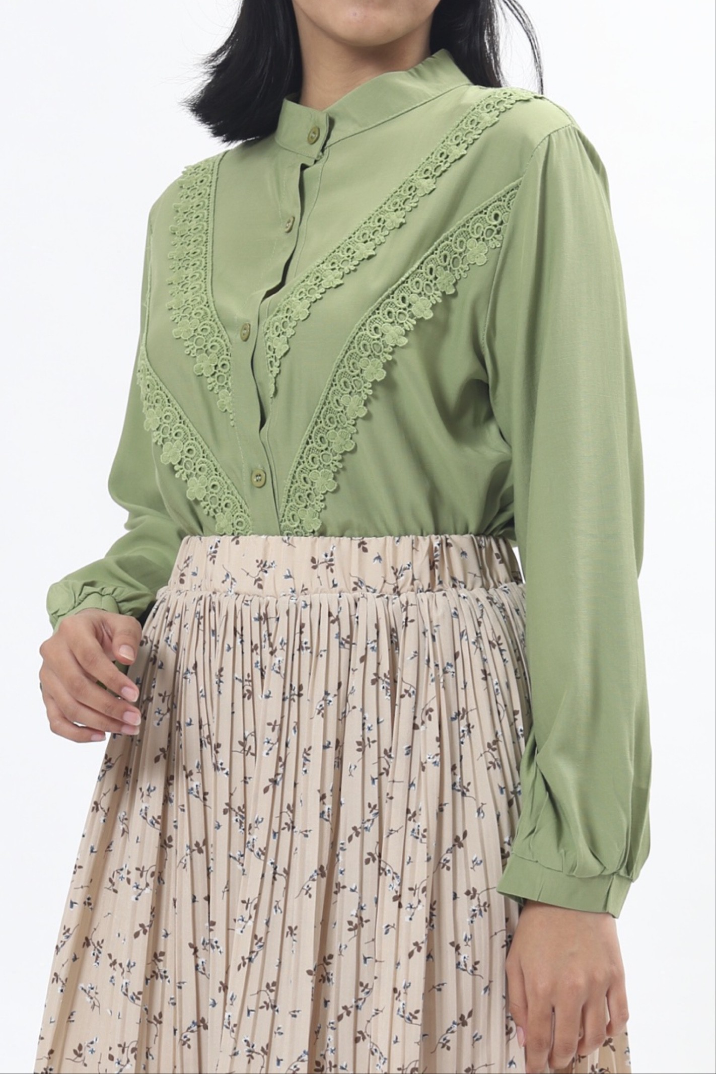 The product material is made from polyester. Washing instruction: Hand or machine wash. Use lukewarm water. Use a gentle cycle if using a washing machine. Model wears J.Rep Petite size (Small).