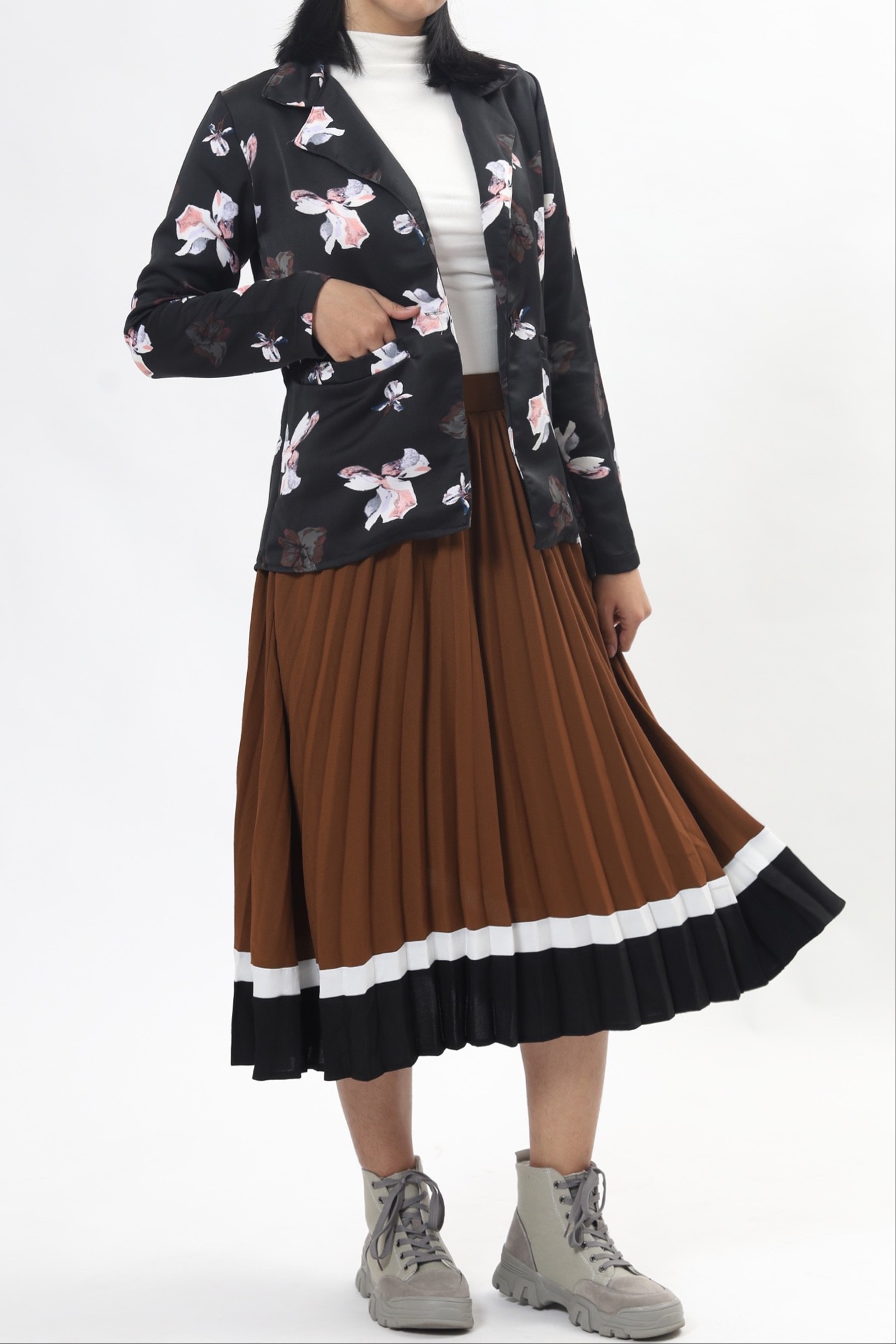 The product material is made from polyester. Washing instruction: Hand or machine wash. Use lukewarm water. Use a gentle cycle if using a washing machine. Model wears J.Rep Petite size (Small).