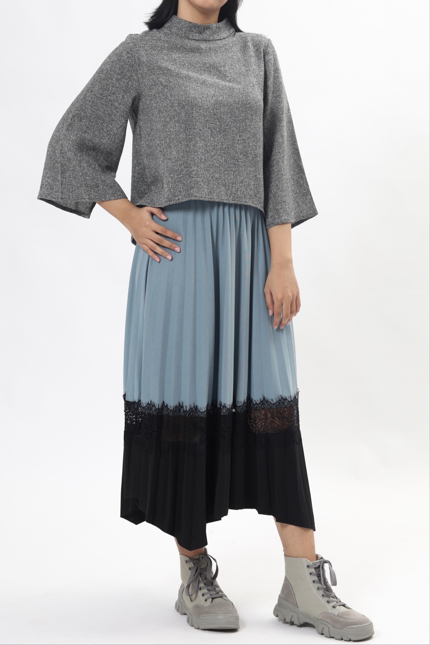 The product material is made from polyester. Washing instruction: Hand or machine wash. Use lukewarm water. Use a gentle cycle if using a washing machine. Model wears J.Rep Petite size (Small).