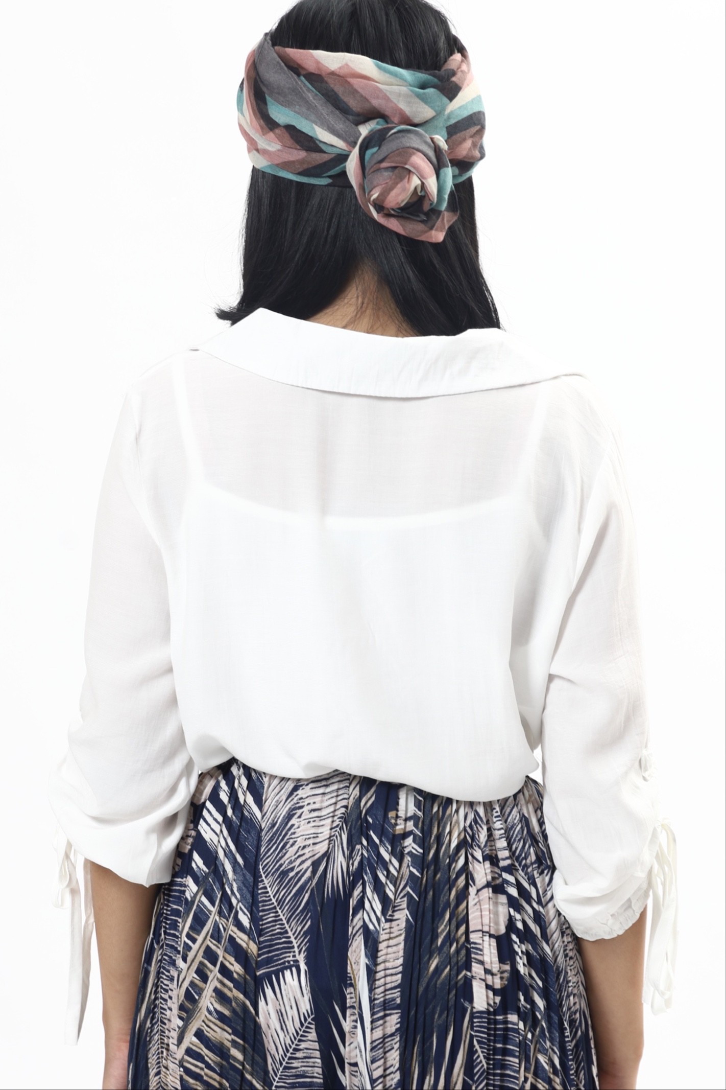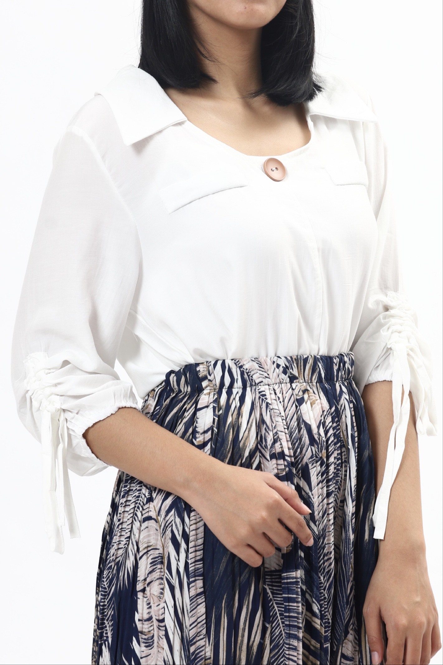 The product material is made from polyester. Washing instruction: Hand or machine wash. Use lukewarm water. Use a gentle cycle if using a washing machine. Model wears J.Rep Petite size (Small).