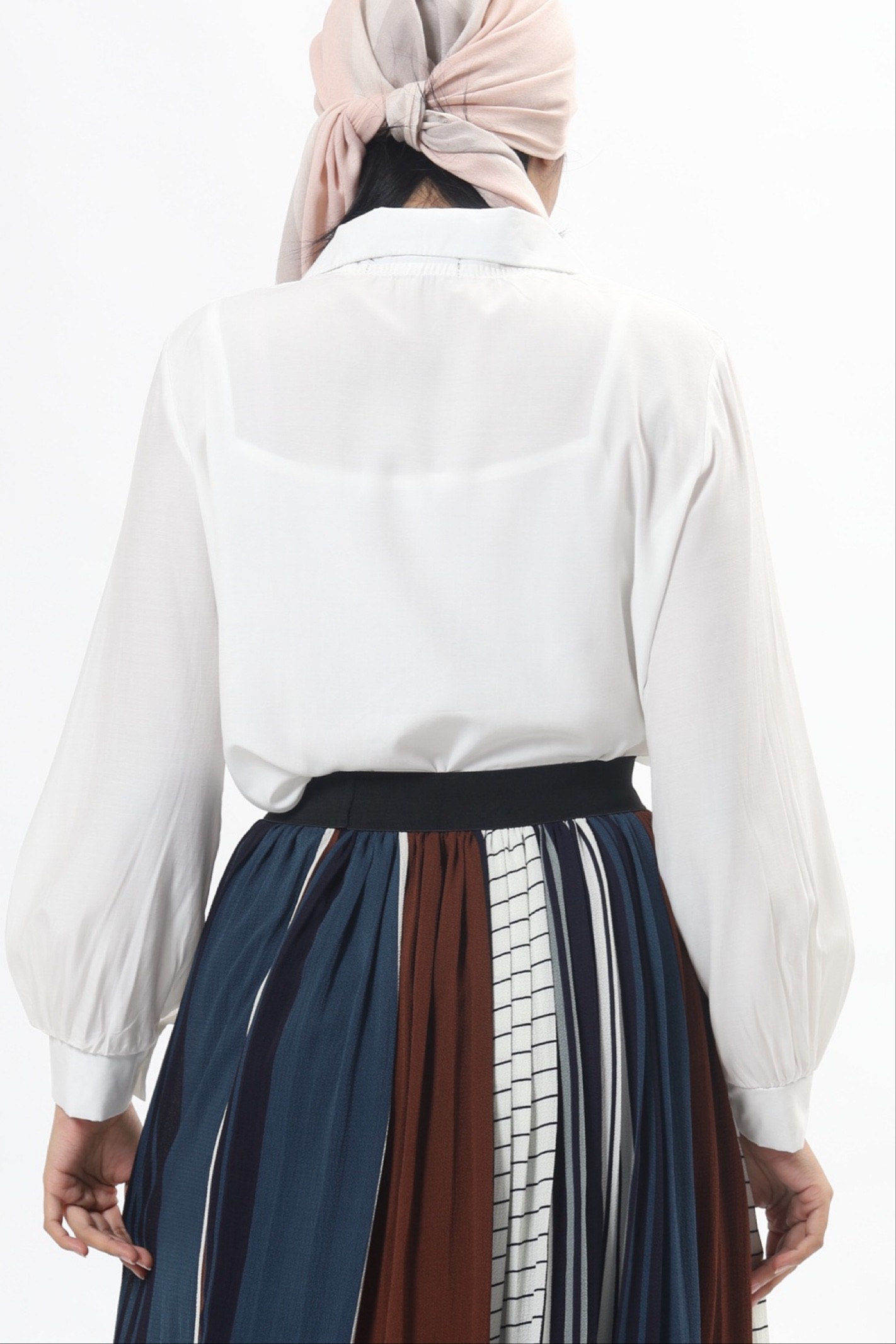The product material is made from polyester. Washing instruction: Hand or machine wash. Use lukewarm water. Use a gentle cycle if using a washing machine. Model wears J.Rep Petite size (Small).