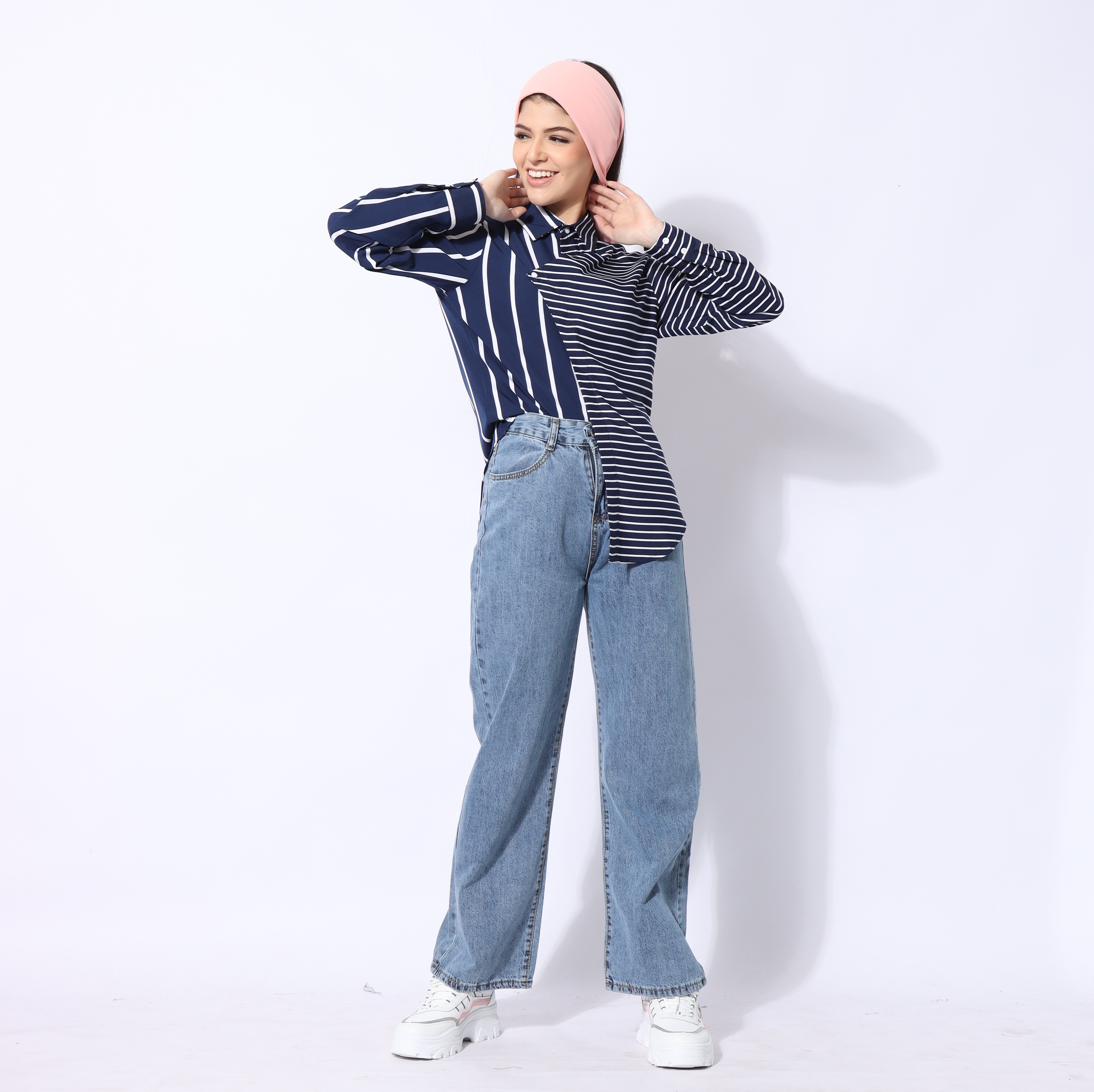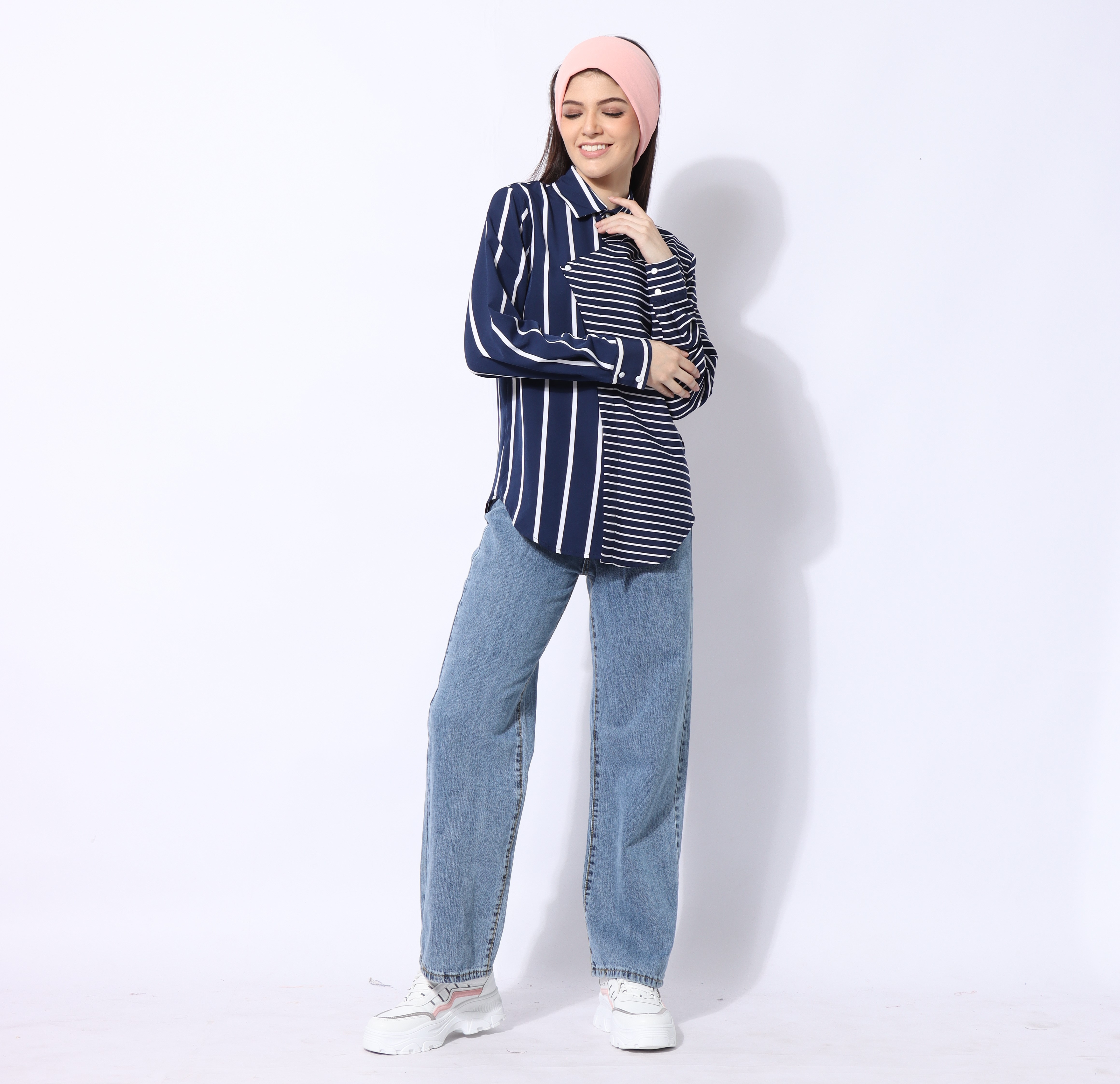 Ramadhan Moon Stripes Combi Overlap Shirt