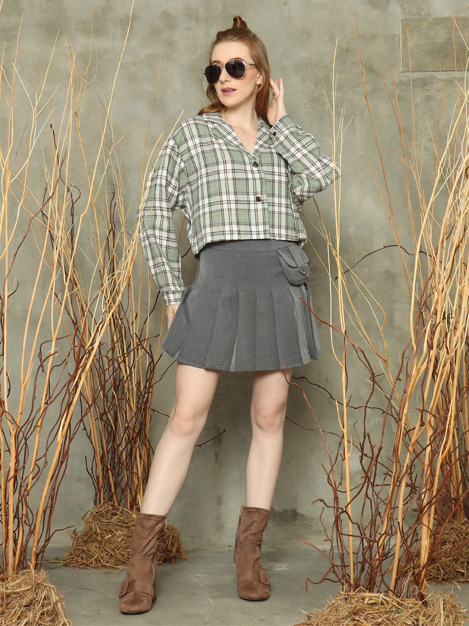 Checkered blazer cut crop top