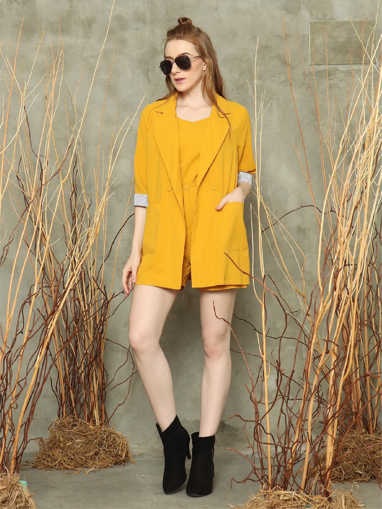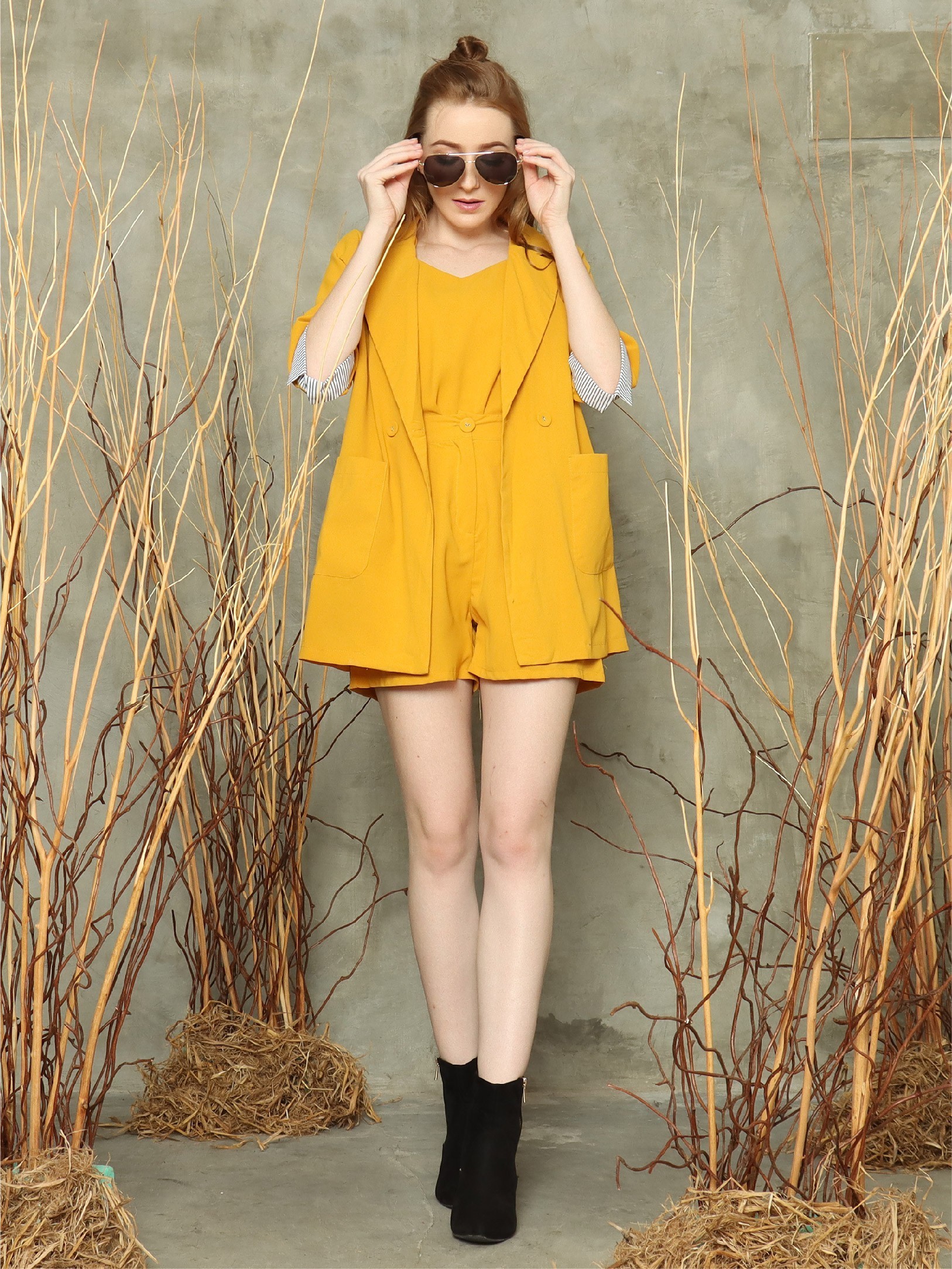 3-pieces set sleeves stripes blazer/camisole/bottom