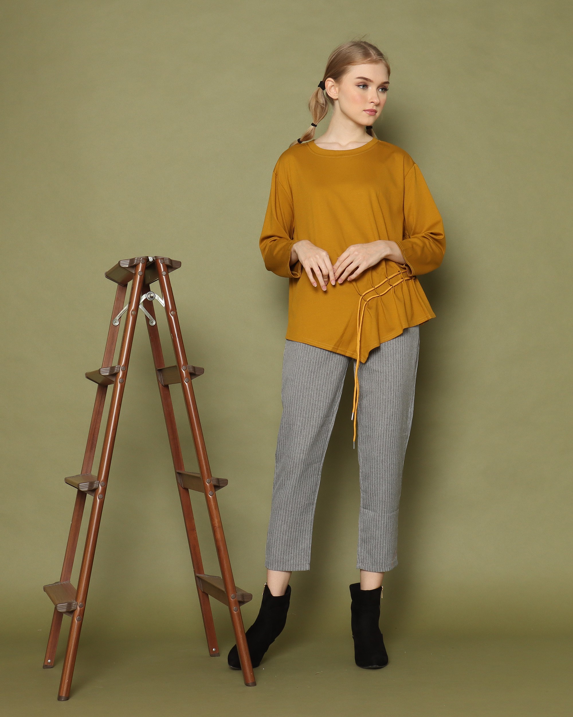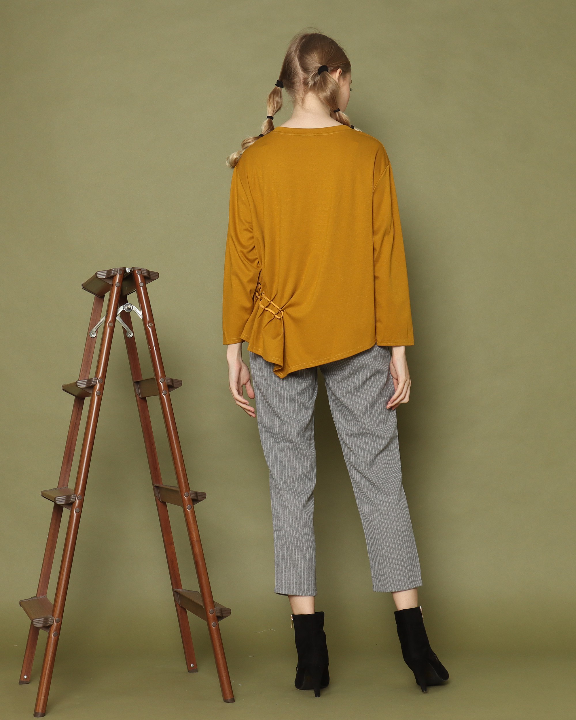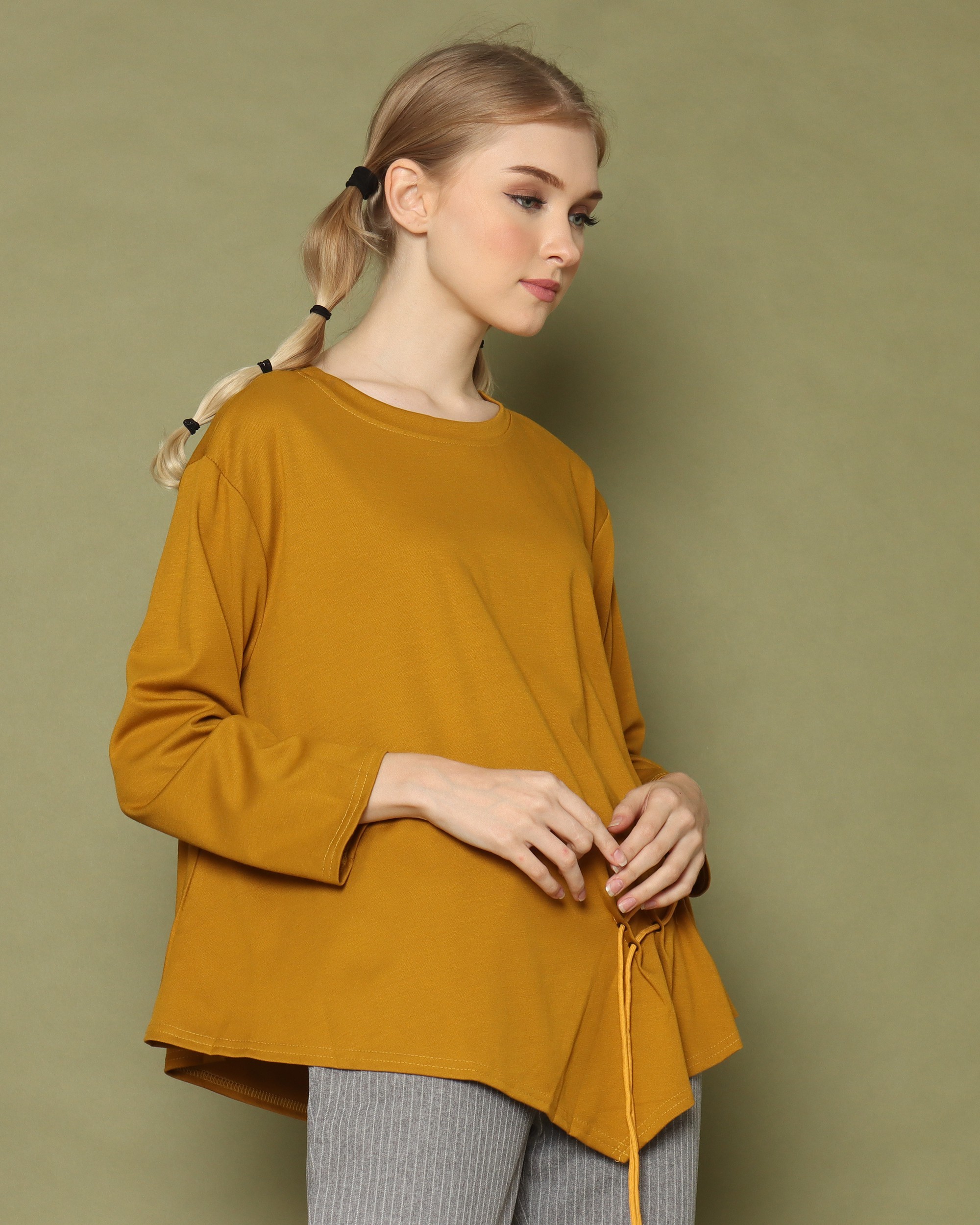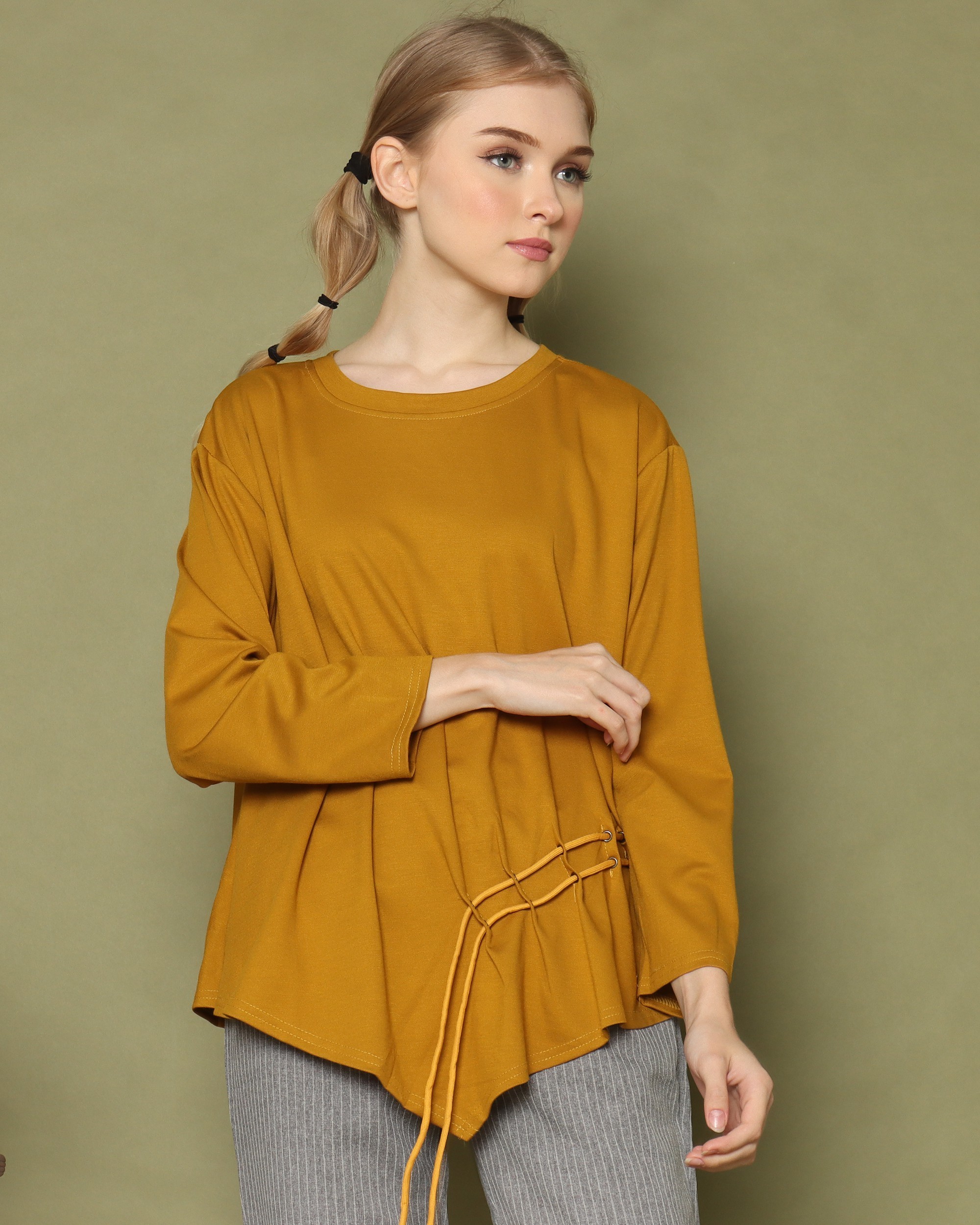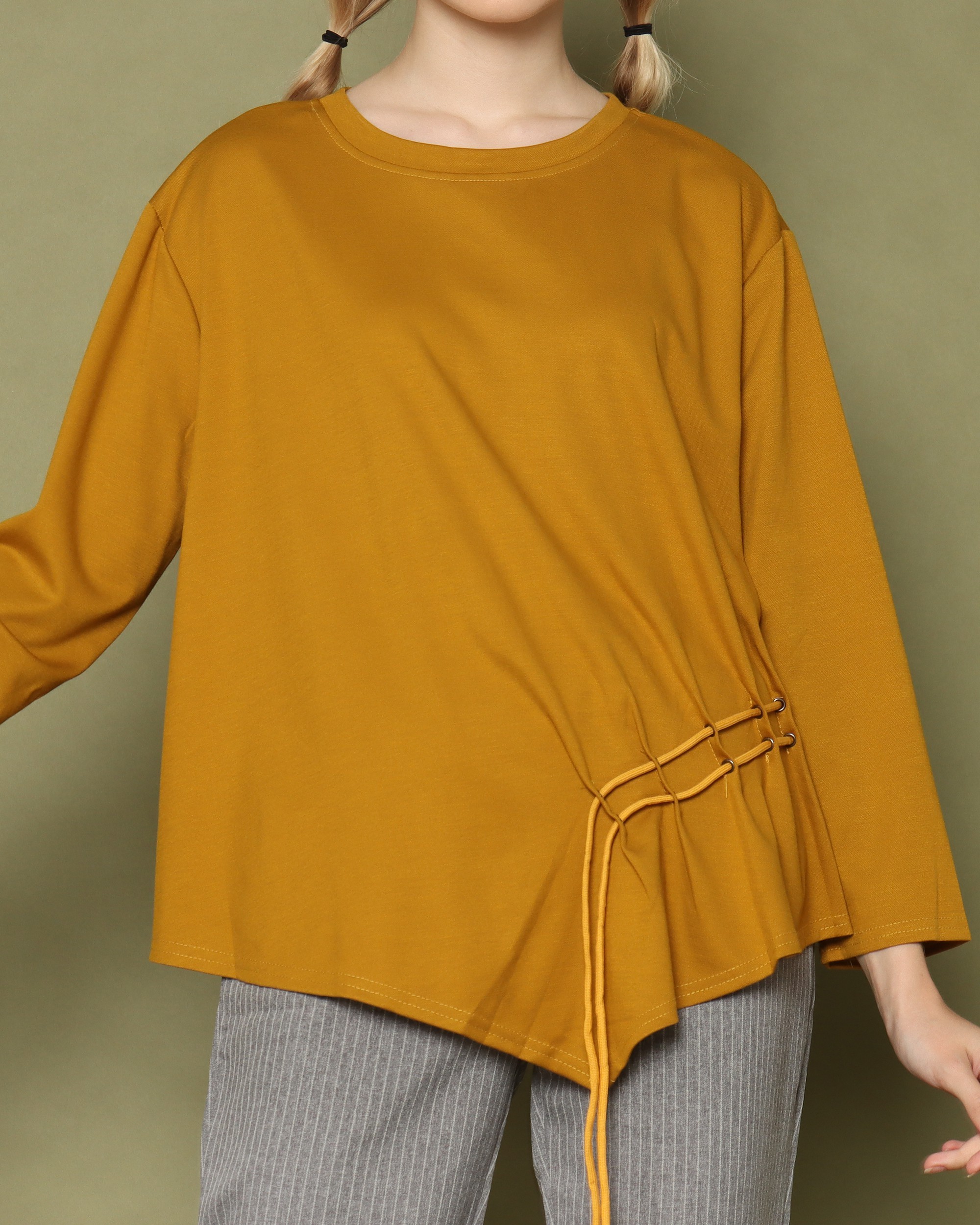 Symetric Side Runched Long Sleeves Top