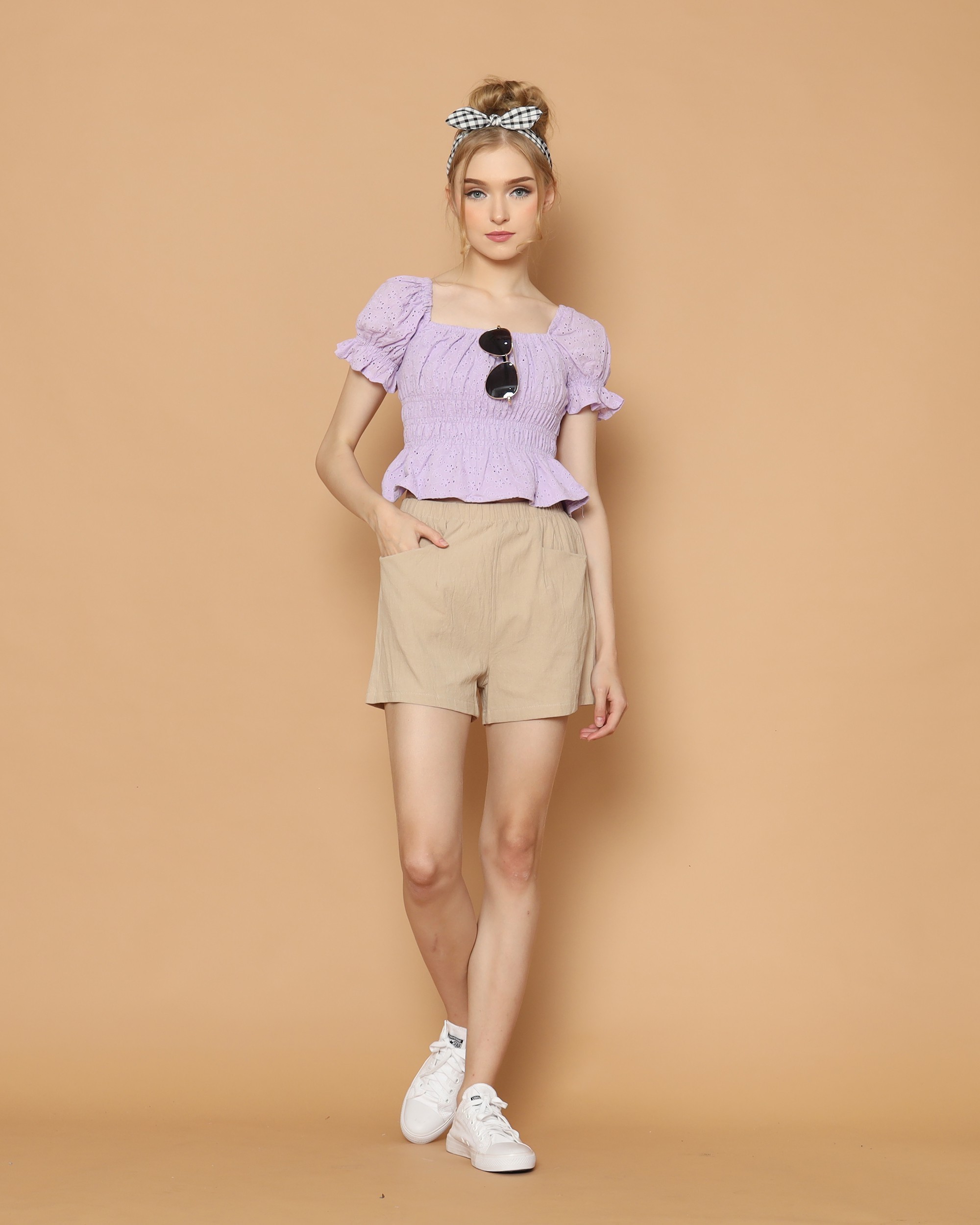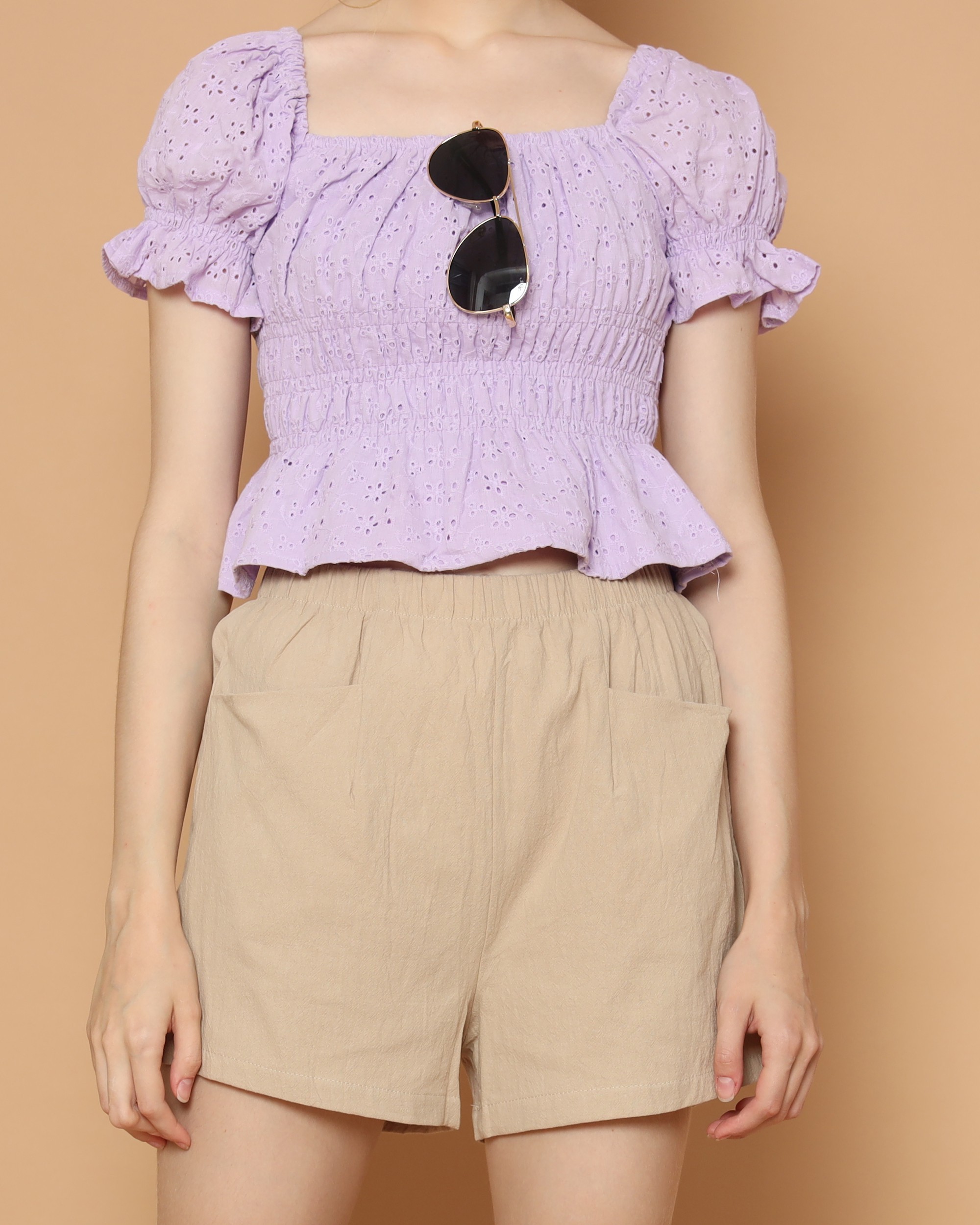 Off Shoulder Embroidered Waist Elastic Top