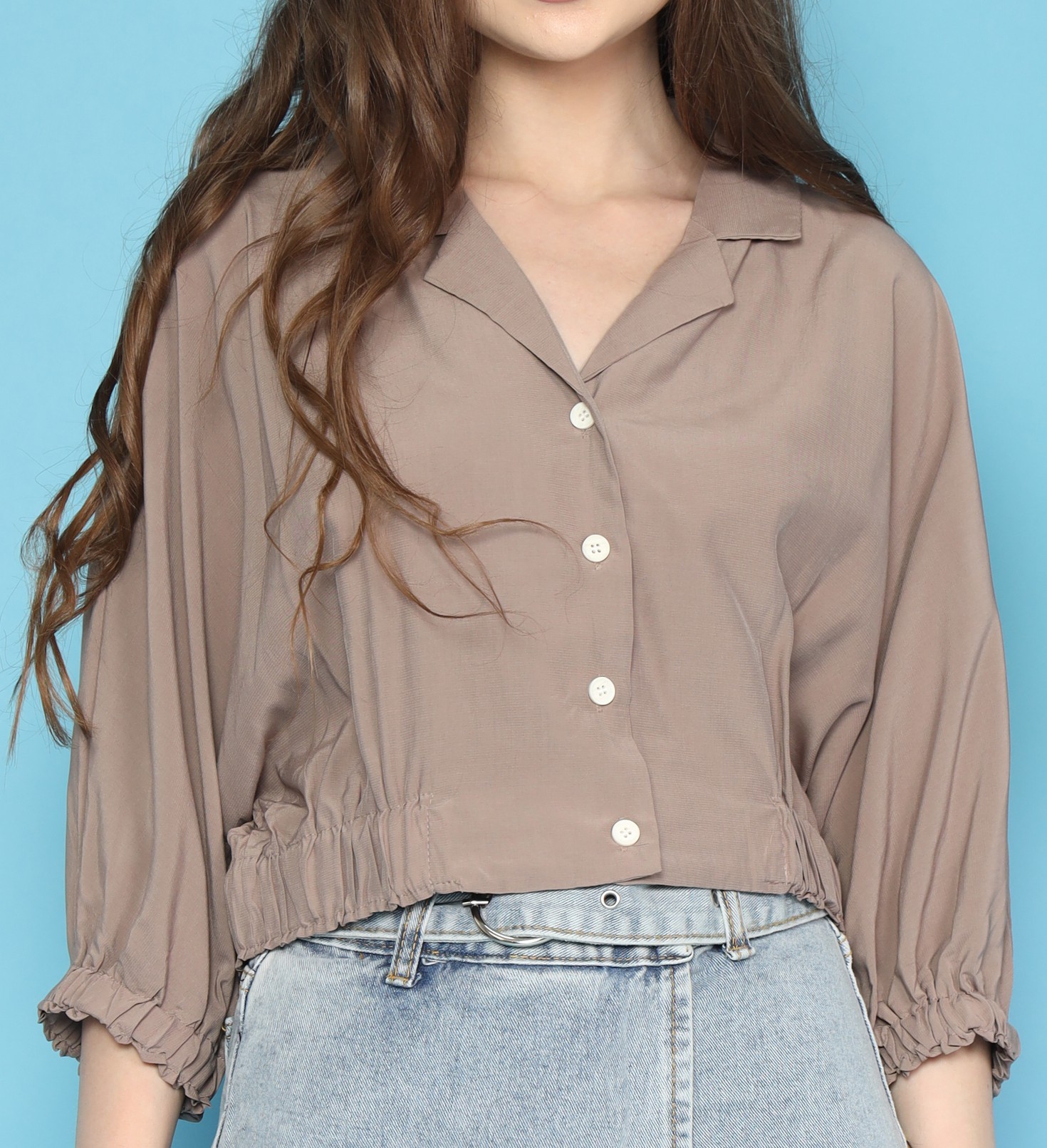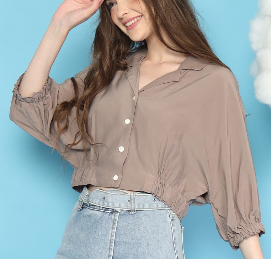 RC Semi Crop Elastic Sleeves Shirt