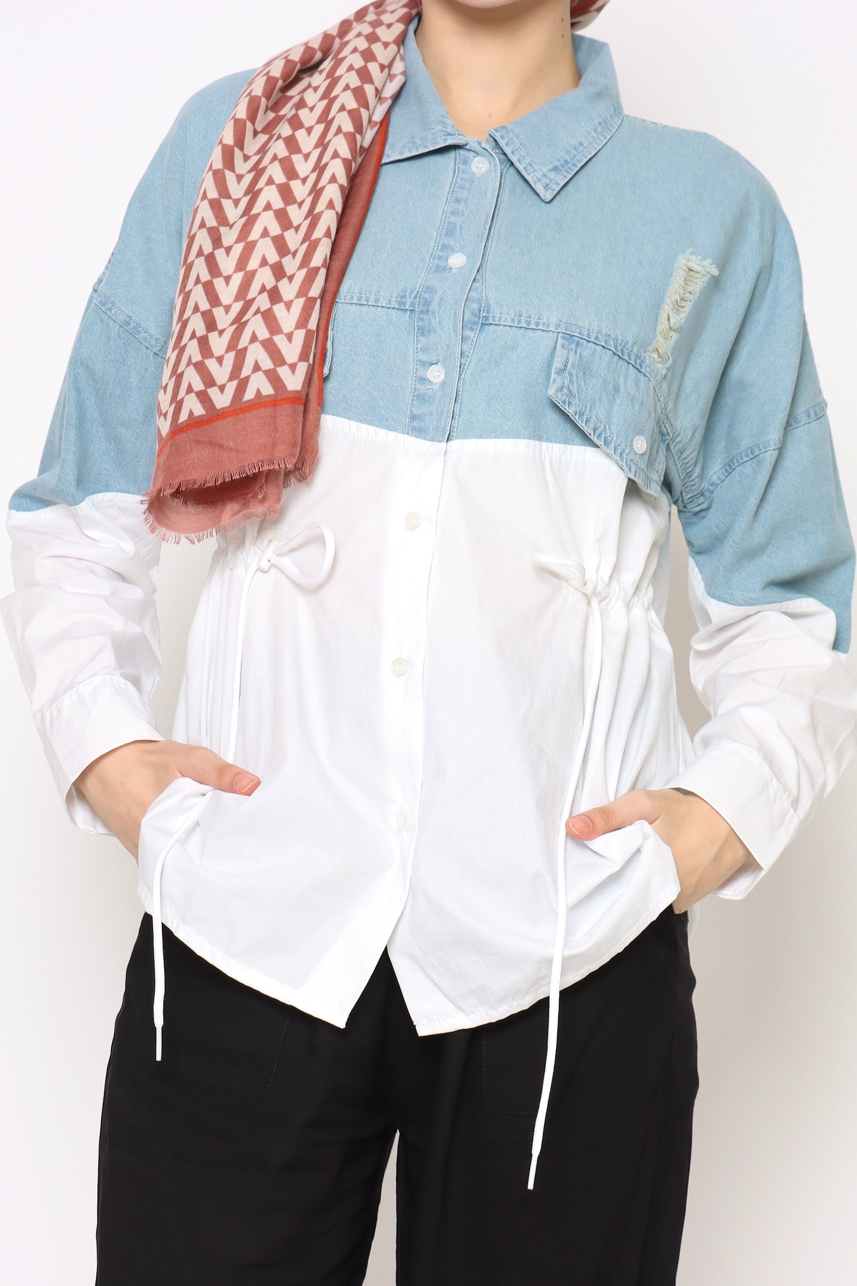 ANF Drawstring Denim Combi Shirt