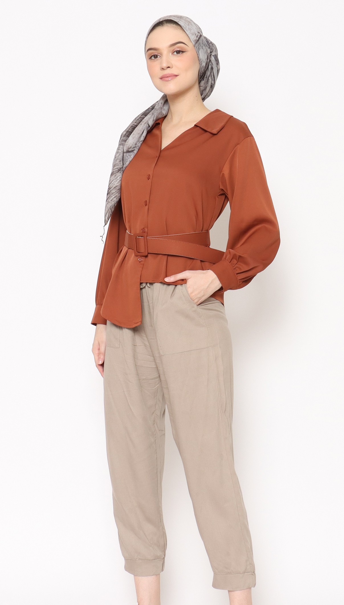 The product material is made from polyester. Washing instruction: Hand or machine wash. Use lukewarm water. Use a gentle cycle if using a washing machine. Model wears J.Rep Petite size (Small).