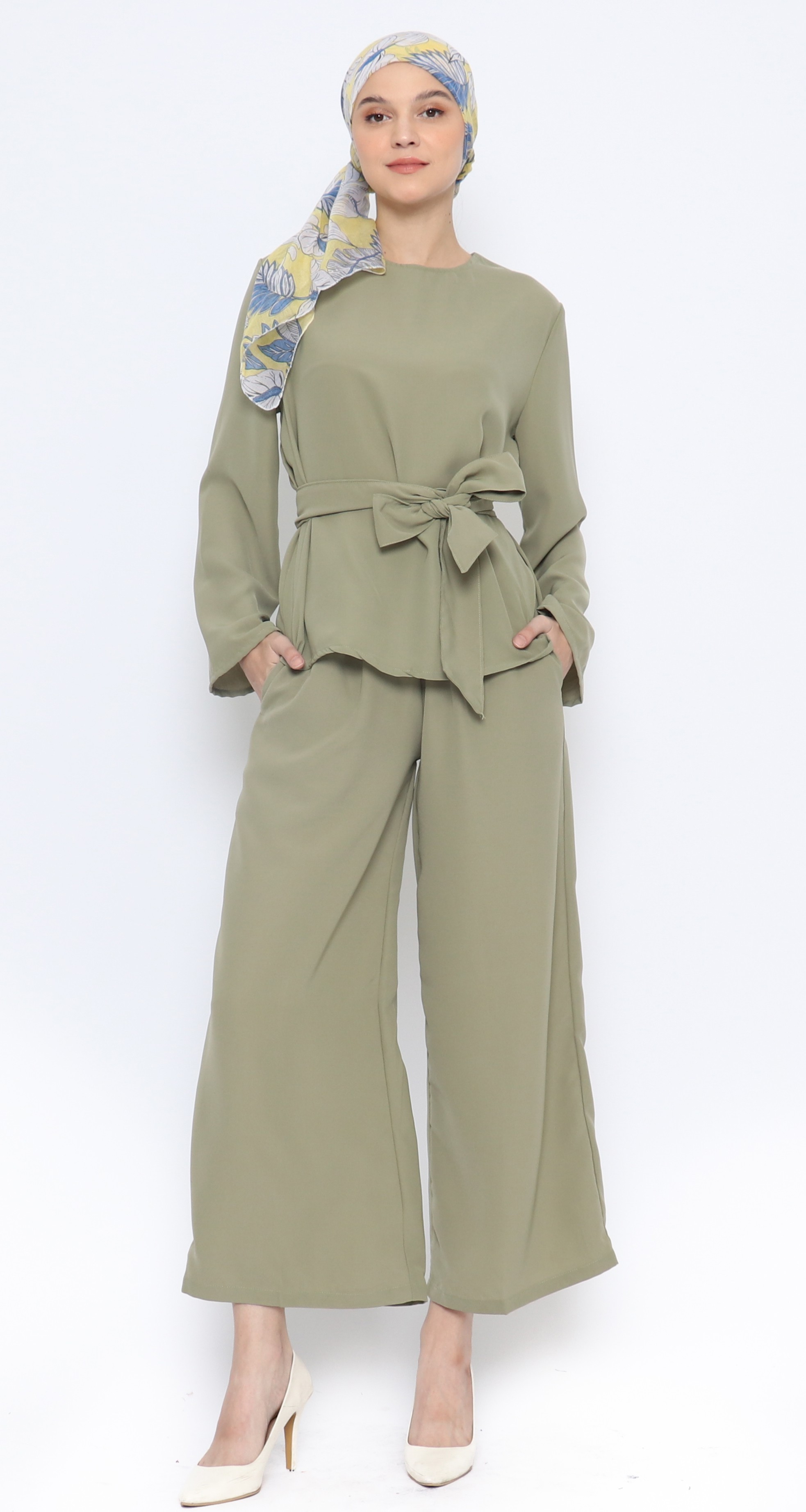 ANF 2 PCS Set Long Sleeves Top & elastic Pants