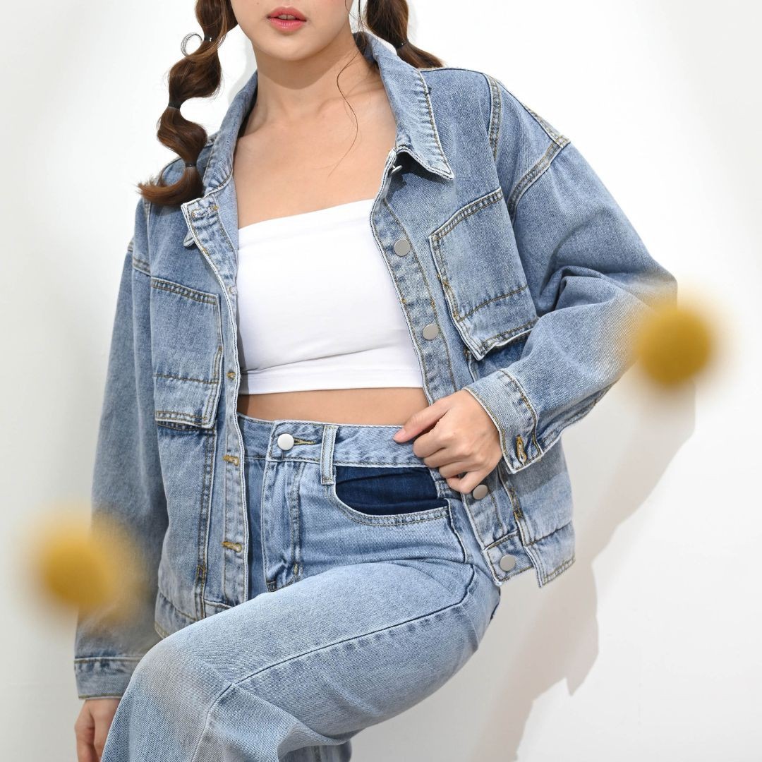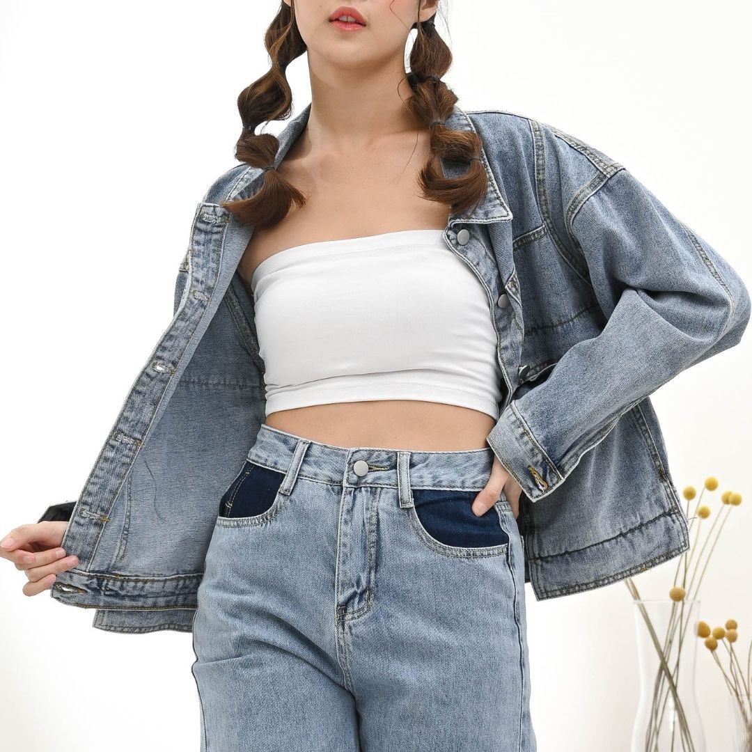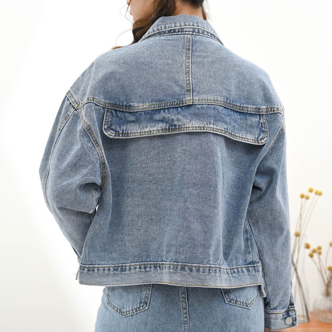 The product material is made from denim. Washing instruction: Hand or machine wash. Use lukewarm water. Use a gentle cycle if using a washing machine. Model wears J.Rep Petite size (Small).