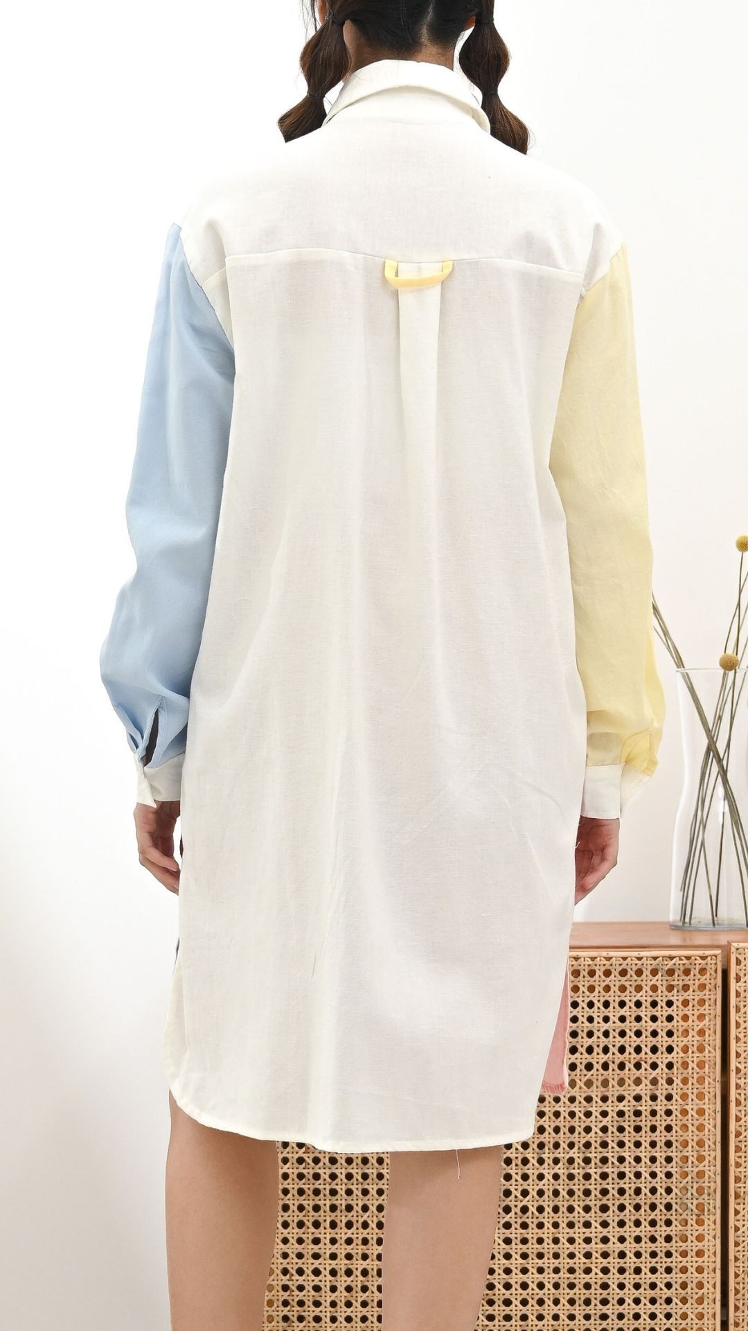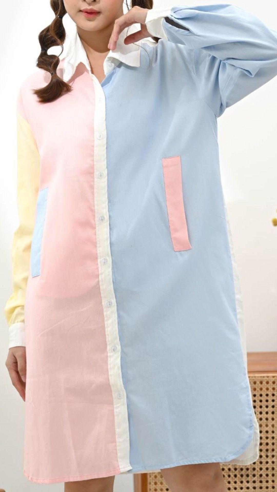 The product material is made from polyester. Washing instruction: Hand or machine wash. Use lukewarm water. Use a gentle cycle if using a washing machine. Model wears J.Rep Petite size (Small).