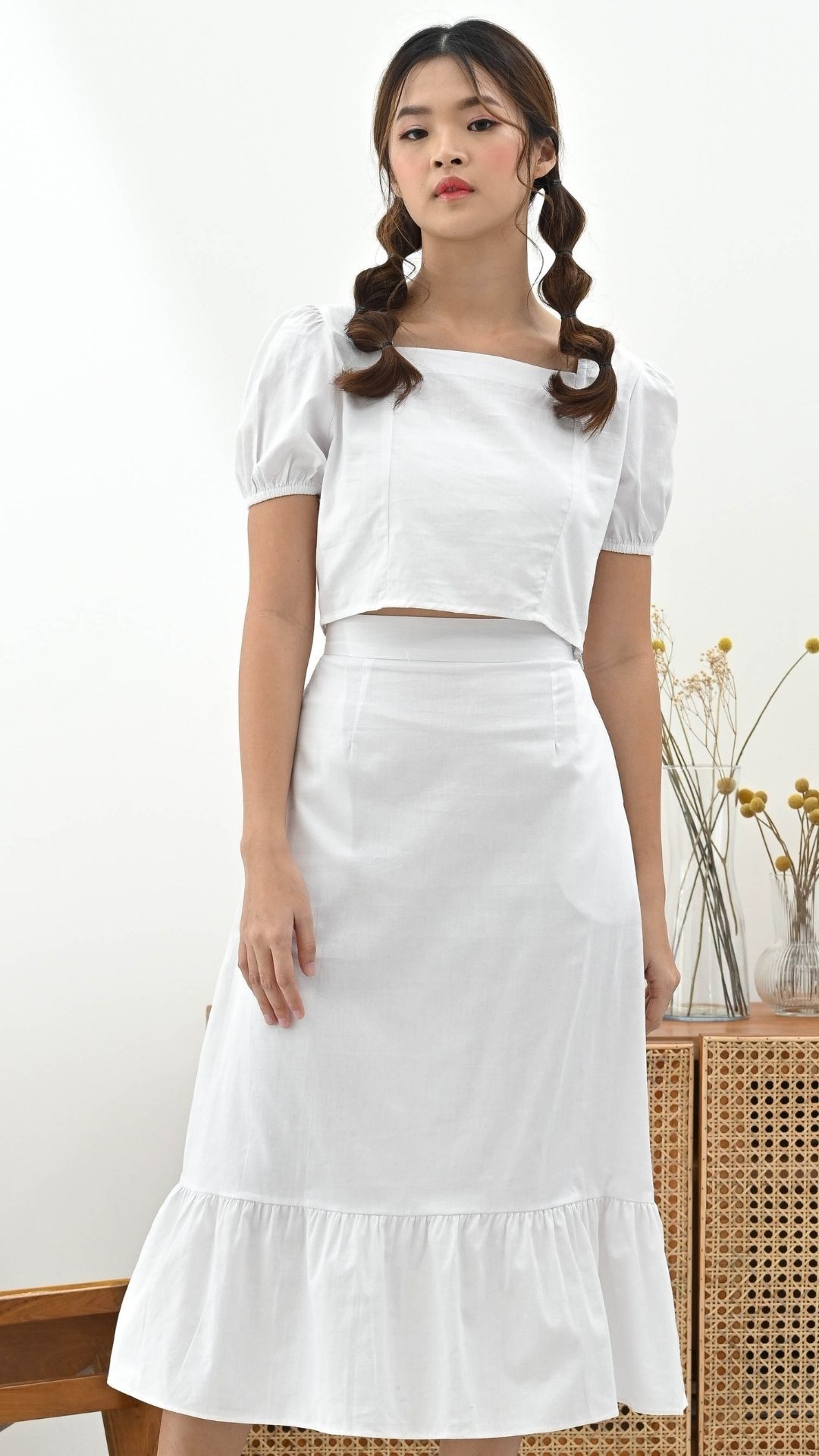 The product material is made from polyester. Washing instruction: Hand or machine wash. Use lukewarm water. Use a gentle cycle if using a washing machine. Model wears J.Rep Petite size (Small).