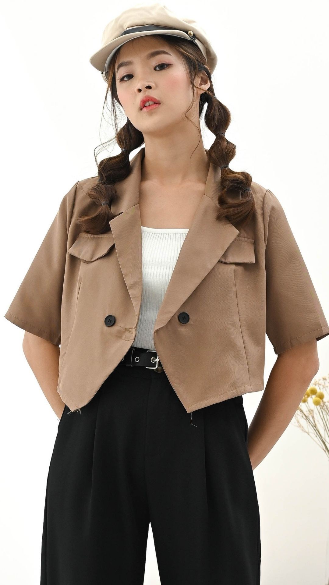 The product material is made from polyester. Washing instruction: Hand or machine wash. Use lukewarm water. Use a gentle cycle if using a washing machine. Model wears J.Rep Petite size (Small).