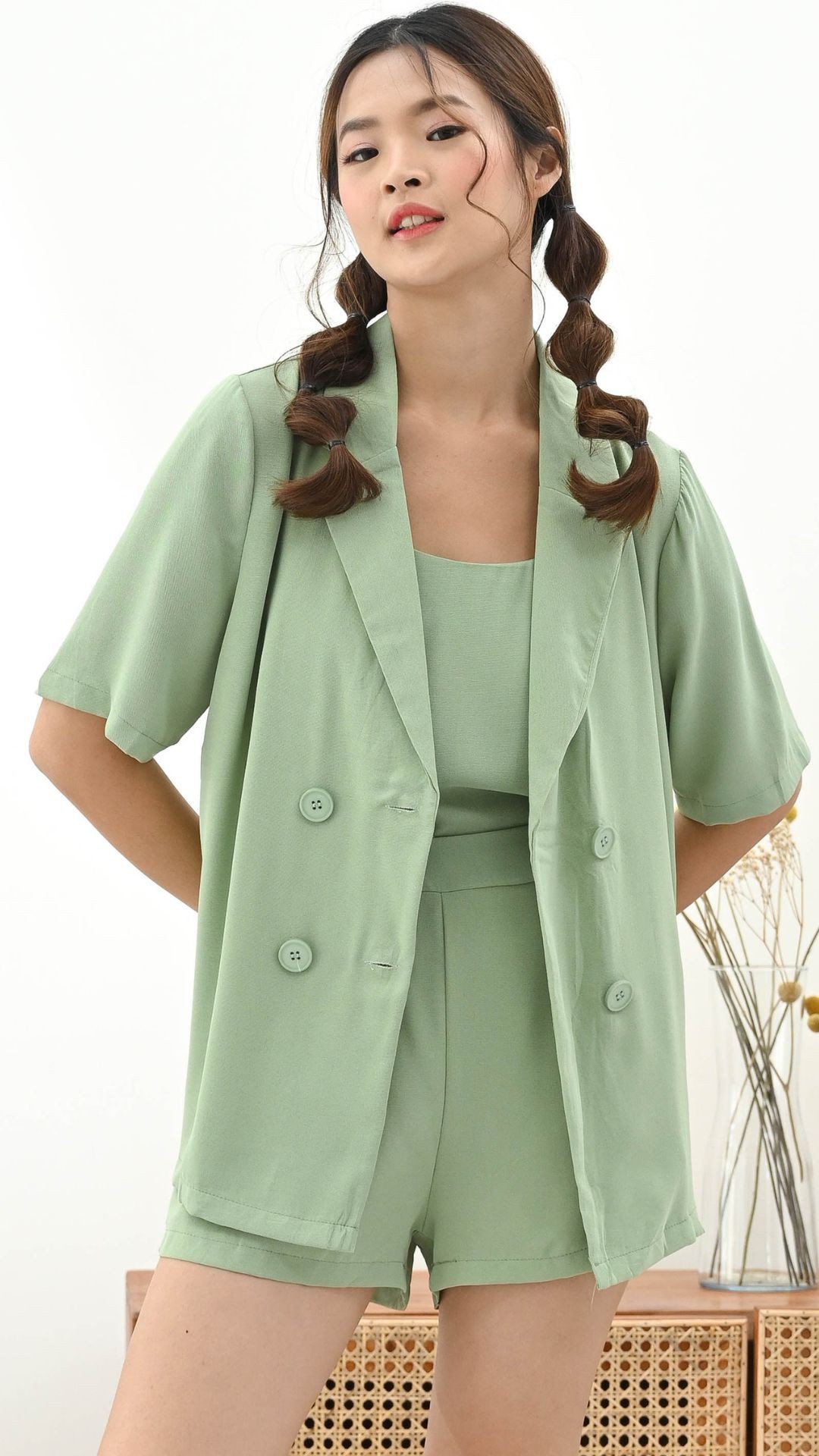 The product material is made from Polyester. Washing instruction: Hand or machine wash. Use lukewarm water. Use a gentle cycle if using a washing machine. Model wears J.Rep Petite size (Small).